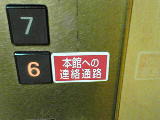 このように特徴的な渡り廊下をもっているということは、おそらく広島そごうにとっても誇りなのだと思います。この渡り廊下を十分にアピールするためか、エレベータのボタン脇に連絡通路を示すステッカーが貼られており、渡り廊下ファンにはやさしい心配りが見られました。